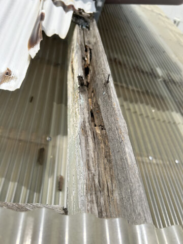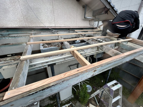 状況を確認したところ、波板だけでなくフレームも腐っている箇所があったので、部分補修しました。